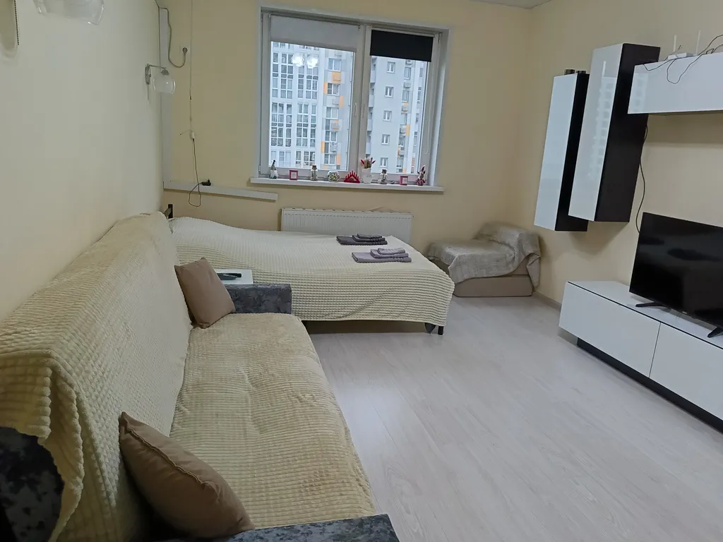 Телевизор, свч, wi-fi, вся необходимая посуда, фен, утюг, стиральная машина, кондиционер, сушилка, гладильная доска, гигиенические принадлежности, аптечка. Всегда чистое постельное бельё и полотенца! Кухонные губки и тряпки всегда новые, меняются с каждыми жильцами. Даже если отключат горячую воду во время вашего прибывания - предусмотрен водонагреватель. Комфортное размещение на трех человек. Возможно дополнительное размещение двух человек, имеется кресло-краскладушка и диван-коовать. Так же, для вашего комфорта предусмотрены ортопедические подушки и матрас на кровать.